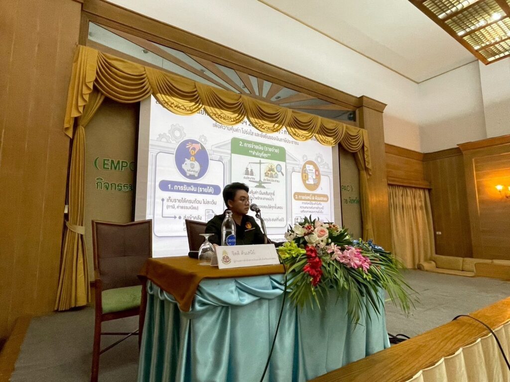 วันจันทร์ ๑๙ มกราคม ๒๕๖๙ นายจิตติ ตันเสนีย์ ผู้อำนวยการสำนักตรวจเงินแผ่นดินจังหวัดแม่ฮ่องสอน พร้อมด้วย นางสาวสายทอง สร้อยสังวาลย์ ผู้อำนวยการกลุ่ม และนายธีรวัฒน์ น้ำคำ นักวิชาการตรวจเงินแผ่นดินชำนาญการ ร่วมเป็นวิทยากรบรรยายให้ความรู้ในเรื่อง “การเฝ้าระวังและตรวจสอบการใช้จ่ายงบประมาณของหน่วยงานภาครัฐ” ในกิจกรรมการพัฒนาศักยภาพสมาชิกชมรม STRONG – จิตพอเพียงต้านทุจริต เพื่อถอนหมุดพื้นที่เสี่ยงทุจริต ประจำปีงบประมาณ พ.ศ. ๒๕๖๙ ภายใต้โครงการเสริมพลัง STRONG – ประชาชนถอนหมุดพื้นที่เสี่ยงทุจริต (Empowering STRONG for Proactive Anti – Corruption : ESPAC) ซึ่งจัดโดยสำนักงานคณะกรรมการป้องกันและปราบปรามการทุจริตแห่งชาติ ประจำจังหวัดแม่ฮ่องสอน โดยมีเครือข่ายสมาชิกชมรม STRONG – จิตพอเพียงต้านทุจริต ในพื้นที่ทั้ง ๗ อำเภอของจังหวัดแม่ฮ่องสอนจำนวน ๑๐๐ คน เข้าร่วมกิจกรรมดังกล่าว ณ ห้องประชุมโรงแรมอิมพีเรียลแม่ฮ่องสอน รีสอร์ท อำเภอเมืองแม่ฮ่องสอน จังหวัดแม่ฮ่องสอน