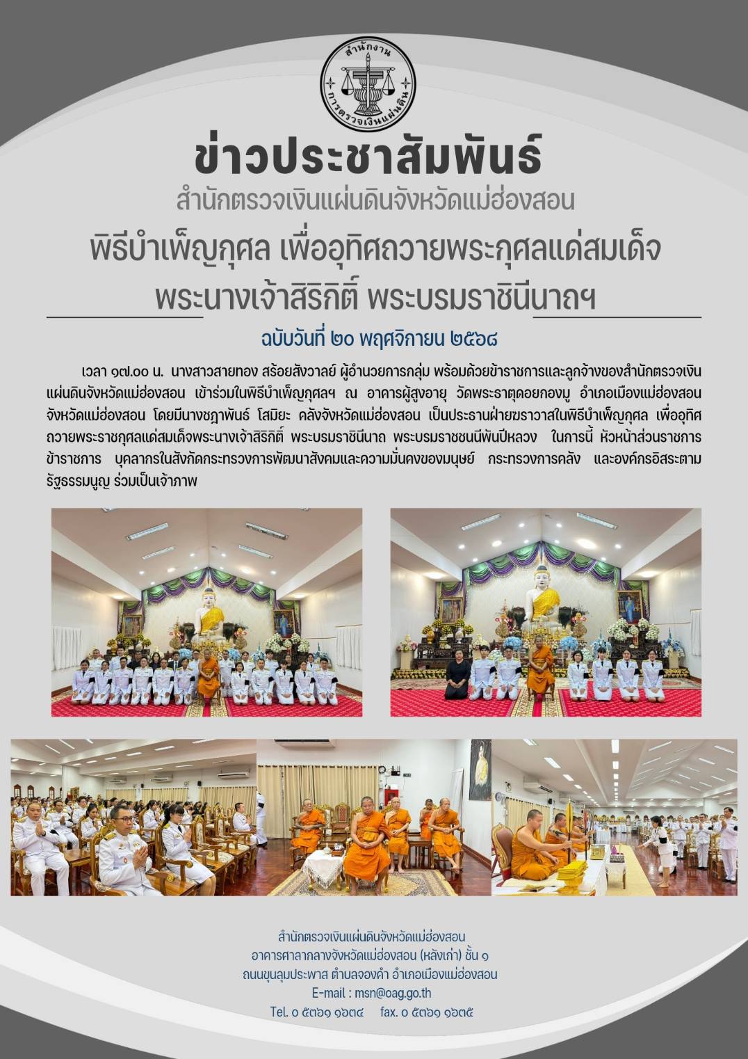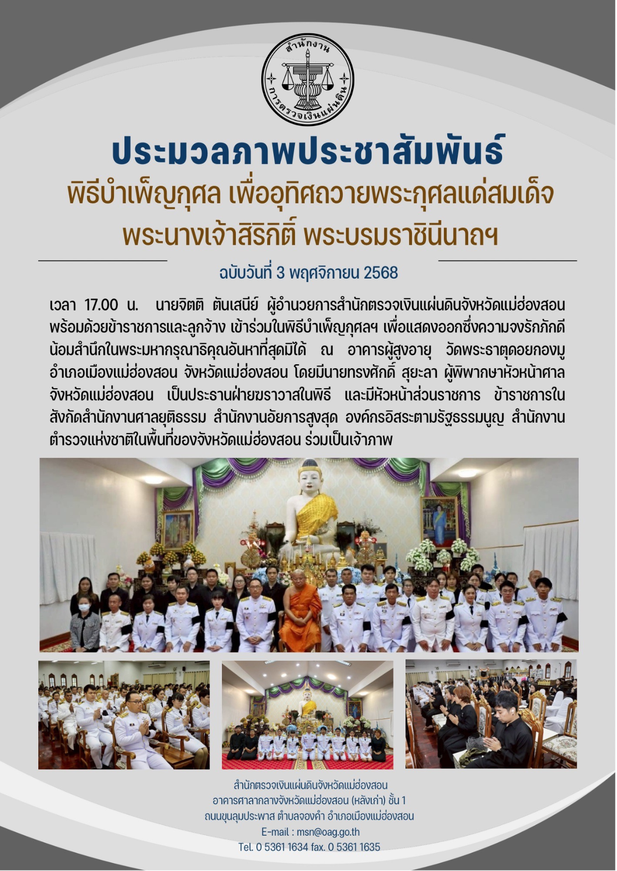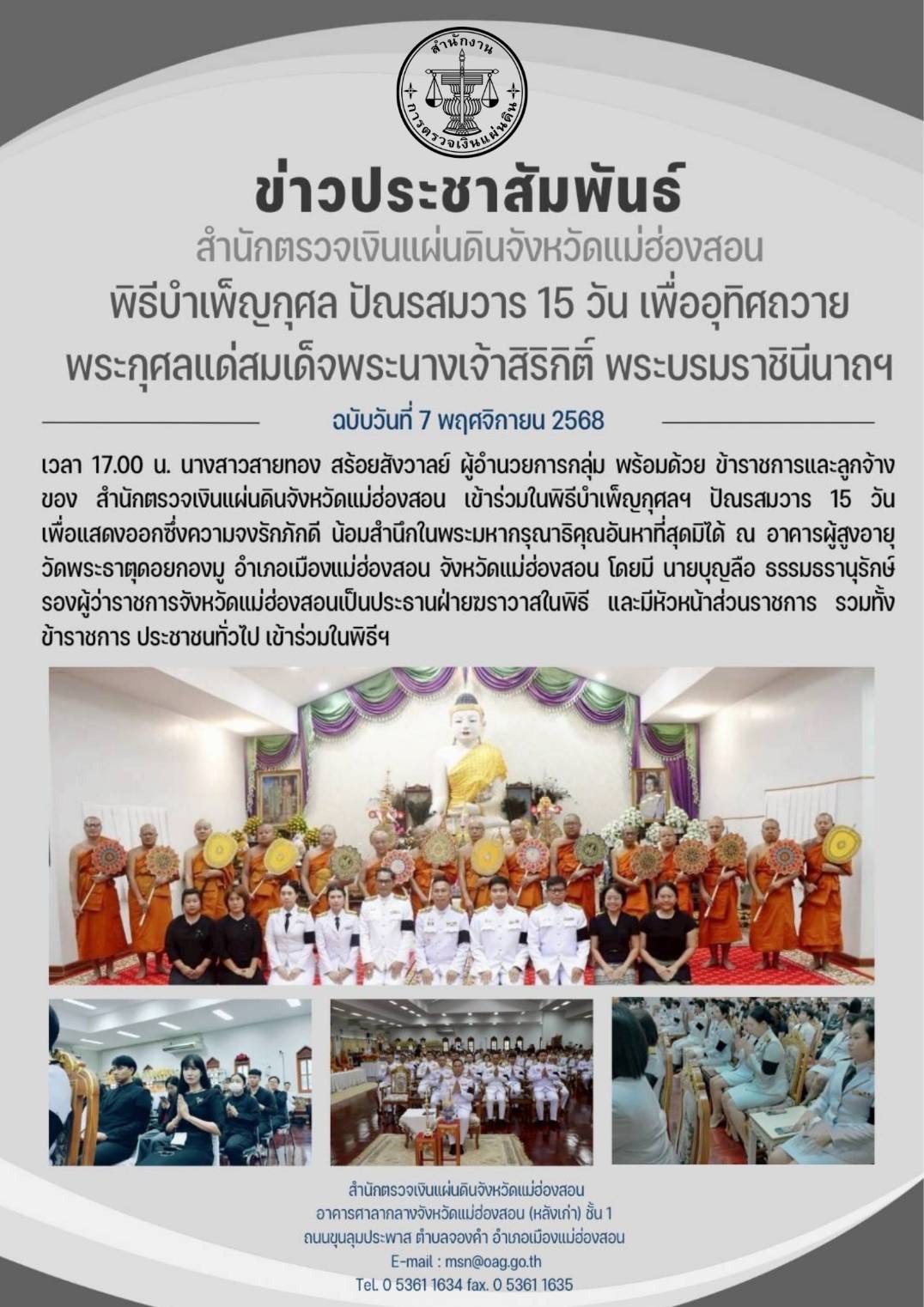 เข้าร่วมในพิธีบำเพ็ญกุศล เพื่ออุทิศถวายพระราชกุศลแด่สมเด็จพระนางเจ้าสิริกิติ์ฯ พฤศจิกายน 5, 2025พฤศจิกายน 5, 2025