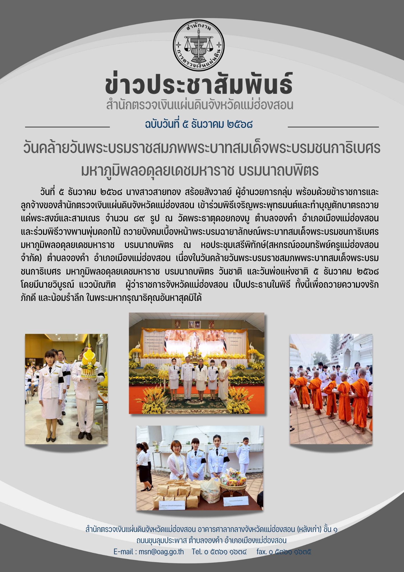 วันคล้ายวันพระบรมราชสมภพพระบาทสมเด็จพระบรมชนกาธิเบศร มหาภูมิพลอดุลยเดชมหาราช บรมนาถบพิตร ธันวาคม 6, 2025ธันวาคม 6, 2025